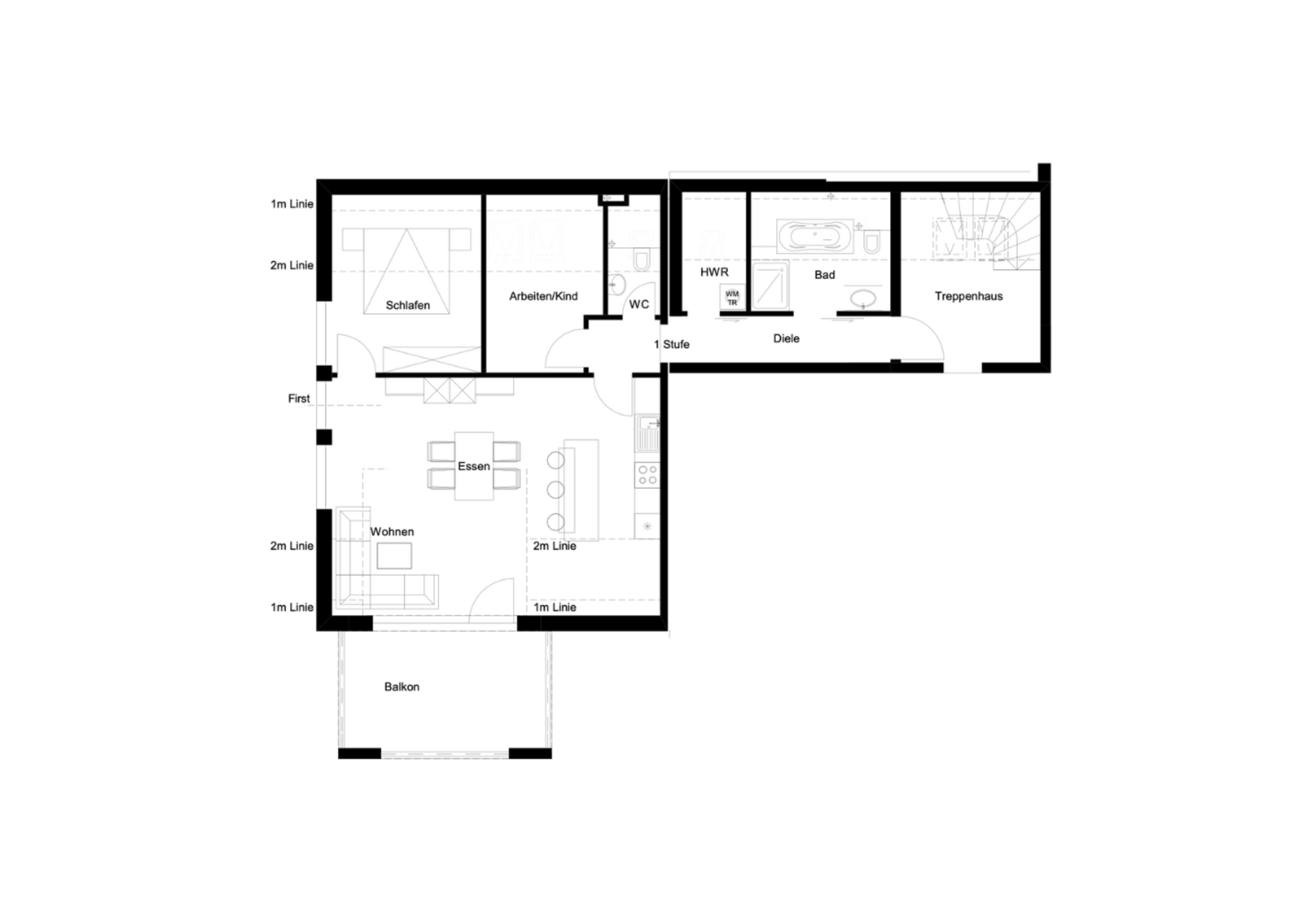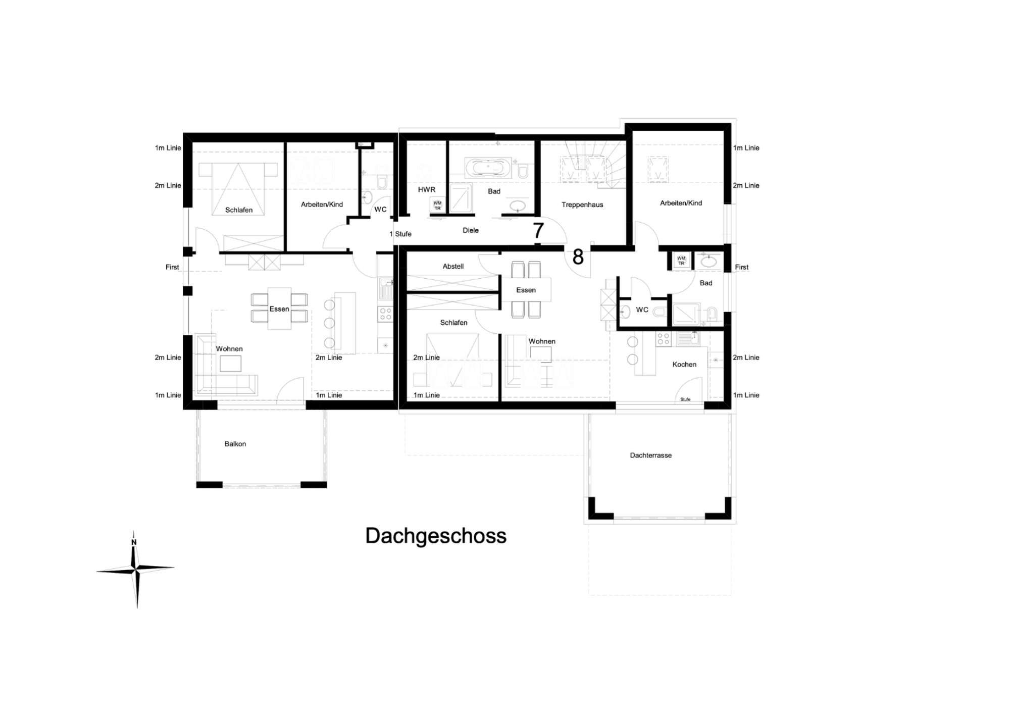 - Geschosse: 3 – Erdgeschoss + Obergeschoss + Dachgeschoss